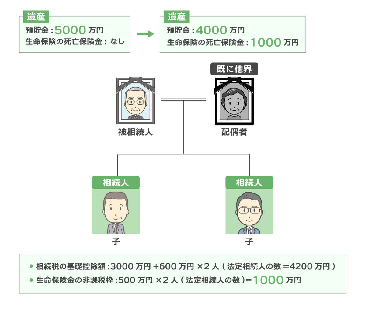 預貯金のうち1000万円を使って、子が生命保険金として500万円ずつ受け取ることができる内容で生命保険に加入しました。