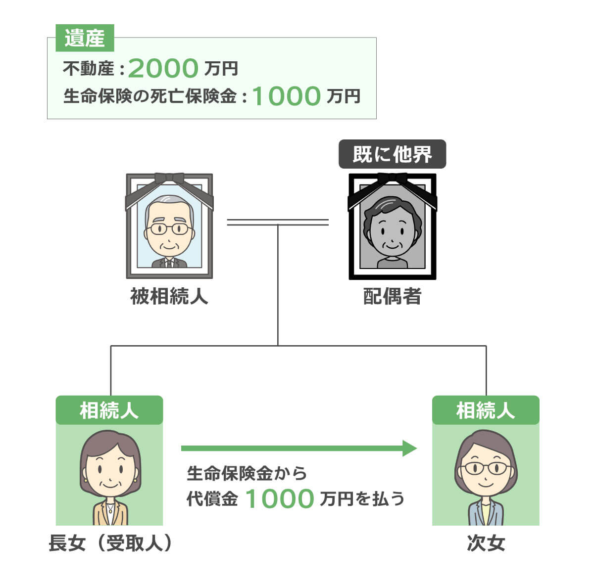 そこで、生命保険の死亡保険金を長女が受け取ることができるようにすることで、代償金の資金として使うことができるようにしました。