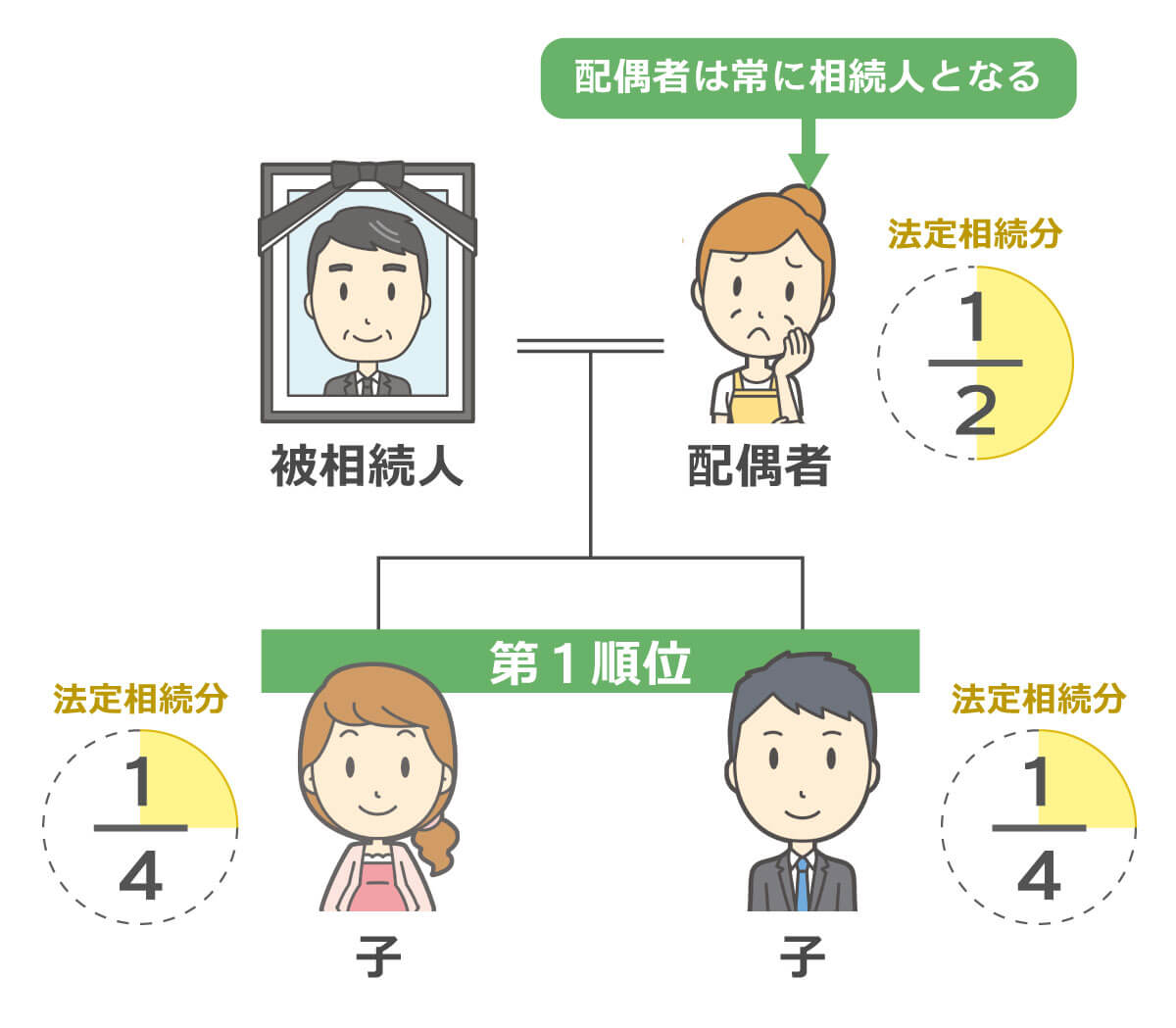 第1順位の相続人は、故人の子です。子がいる場合、第2順位以下の相続人(親や兄弟姉妹)は相続人になることができません。