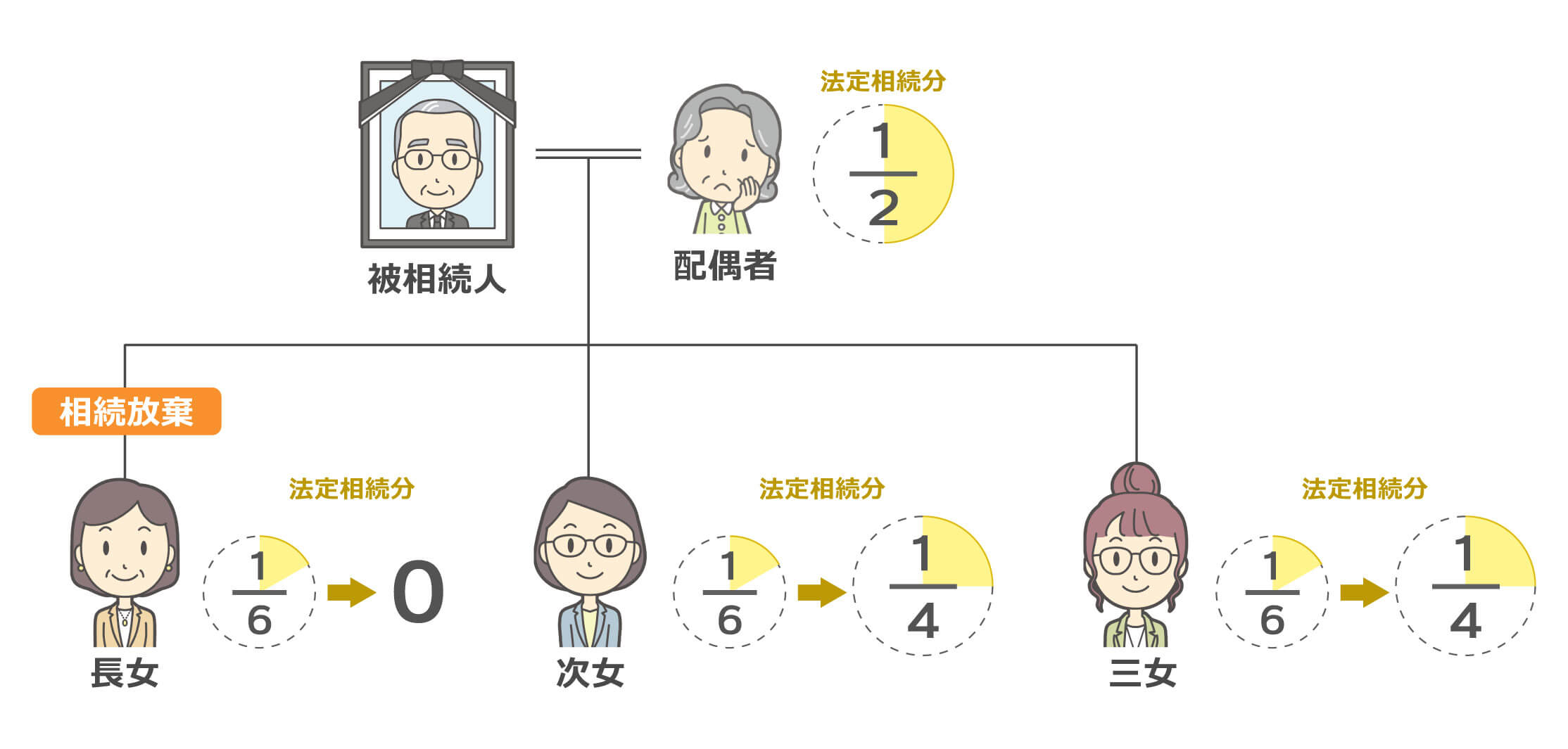 相続放棄があった場合、残りの相続人の法定相続分が変わってきます。